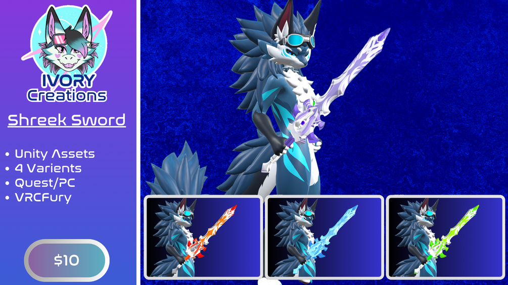 The avatar base pictured with the asset is the Novabeast Base by Kittomatic. This package only includes the Swords and not the Novabeast base model.